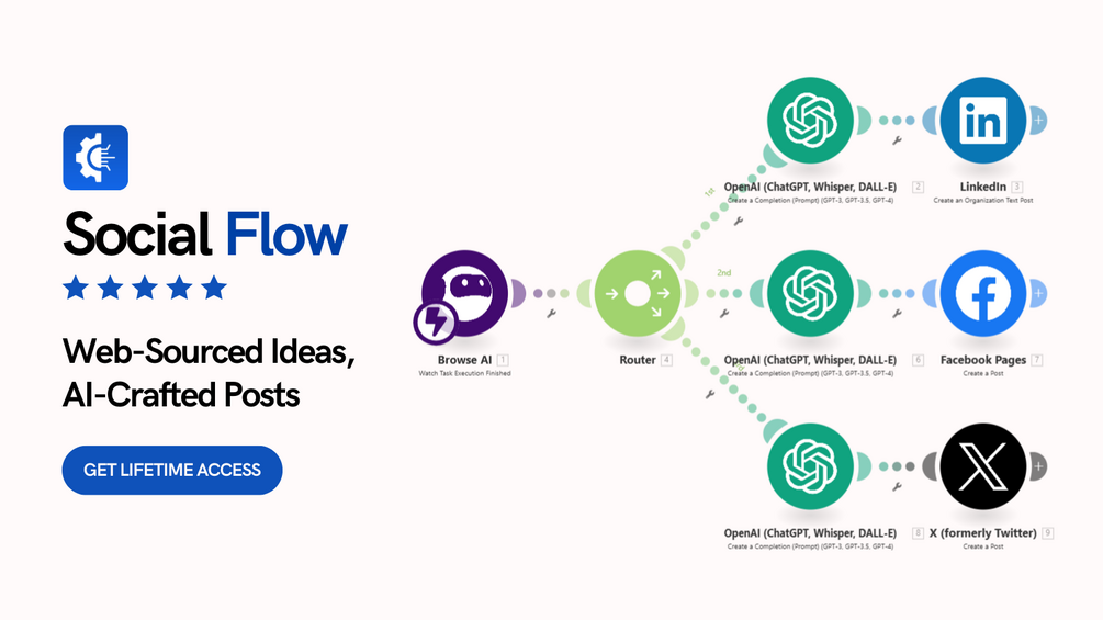 - Smart Web Browsing: Social Flow uses Browse AI to extract valuable content from the web.